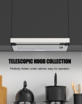 The Telescopic hood is designed for easy operatingand cleaningthe sliding out panel with simple motorand light control to freeyour mind in the kitchen.Now are also have a lot of other options for air flowand switch,give customer more choice when theychoosing telescopic hood.